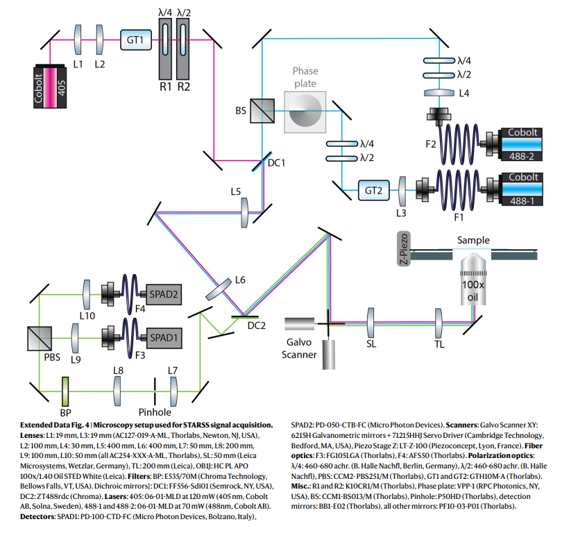 また、STARSS法では、ON状態とOFF状態の両方で光選択が可能であり、多様な実装が考えられる。例えば、蛍光分子rsEGFP2やDronpaM159Tを用いることで、30〜100 nmの直径を持つ球状粒子の回転ダイナミクスを測定し、従来のTR-FAの質量限界を数kDaからMDa(メガダルトン)範囲まで拡張することに成功した。これにより、ヒトプロテオーム全体にわたる任意の大規模構造を解析することが可能となった。