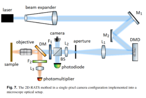 しかし、従来のRATS法は回転拡散板を用いて物理的に光の不規則な変動を生成していたため、その変動速度の限界から時間分解能がマイクロ秒単位に制限され、高速な現象の観測が困難であった 。また、拡散板による光の散乱により励起光の利用効率が極めて低く、試料への照射強度が不足する課題もあった 。演算処理の面においても、時間軸上の全点において個別に画像を復元し、その後に膨大な数の画素に対して関数の適合を行う必要があったため、解析に多大な計算時間を要していた 。