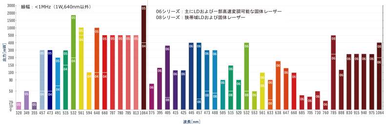 また Cobolt の固体レーザーはシングル縦モード発振、低ノイズ、高ビーム品質(M²≈1.1)を備え、ラマン分光、蛍光顕微鏡、ホログラフィー、干渉計測など幅広い用途で利用されています。